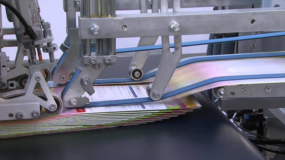3. O papel é alimentado por várias correias grossas sob a ajuda do motor de vibração. A alimentação é contínua, exata e automática com este sistema.