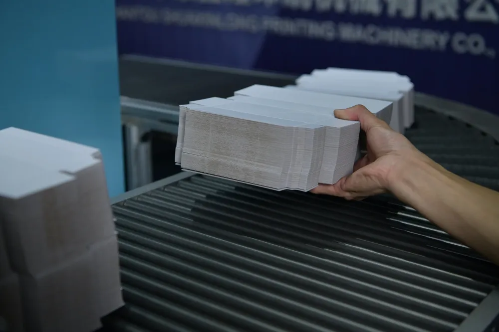 Remove resíduos de papel após o corte, eliminando a necessidade de separação manual. Isso resulta em um produto final com acabamento superior, adequado para caixas dobráveis e onduladas E/F em diversas indústrias, como embalagens farmacêuticas, alimentícias, cosméticas, cigarros, eletrônicos, etiquetas e outros produtos de consumo.