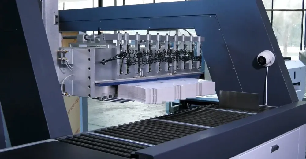 Capaz de lidar com pilhas de papel com espessura de 50 a 85 mm, o equipamento processa entre 8.000 a 10.000 folhas por hora, variando conforme o produto. Isso permite uma produção contínua e de alto volume.