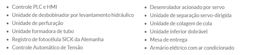 > Velocidade: 30-180 sacolas/min