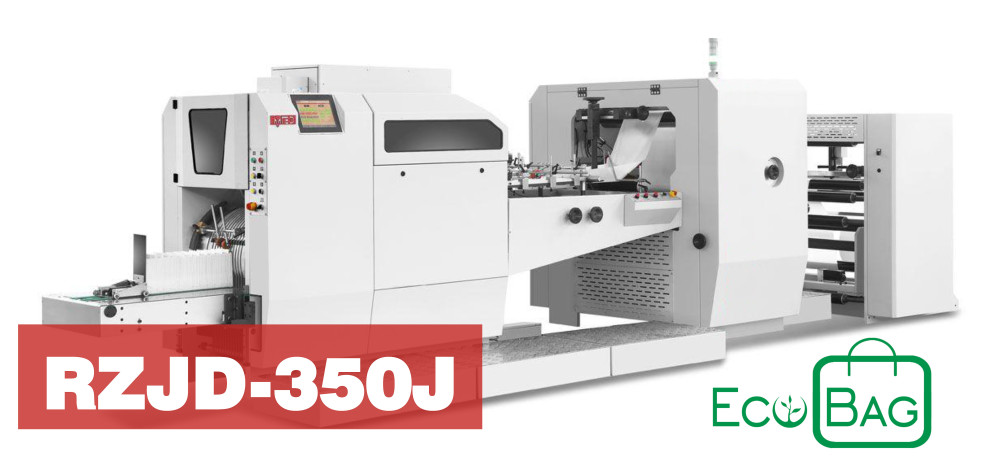 A EcoBag RZJD-350J é a máquina perfeita para fazer sacos de papel planos nos tamanhos médio e grande. Ela é capaz de fazer sacos com até 350 mm de largura e 715 mm de comprimento de corte. Adequada para uma variedade de aplicações, desde alimentos, sacos para farmácias a varejo e setores industriais. Faz sacos de papel com ou sem reforço. O reforço máximo de 120 mm é facilmente ajustável na máquina. Não importa o tipo de papel, comum ou impresso, ele pode funcionar perfeitamente com seu design Servotech avançado e configuração de registro por fotocélula. É o equipamento ideal para fazer sacos de papel ecológicos, como sacos de snacks, sacos de pão e sacos de frutas secas.