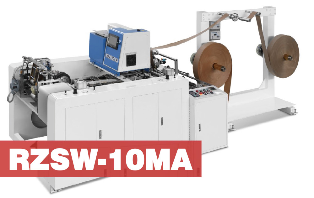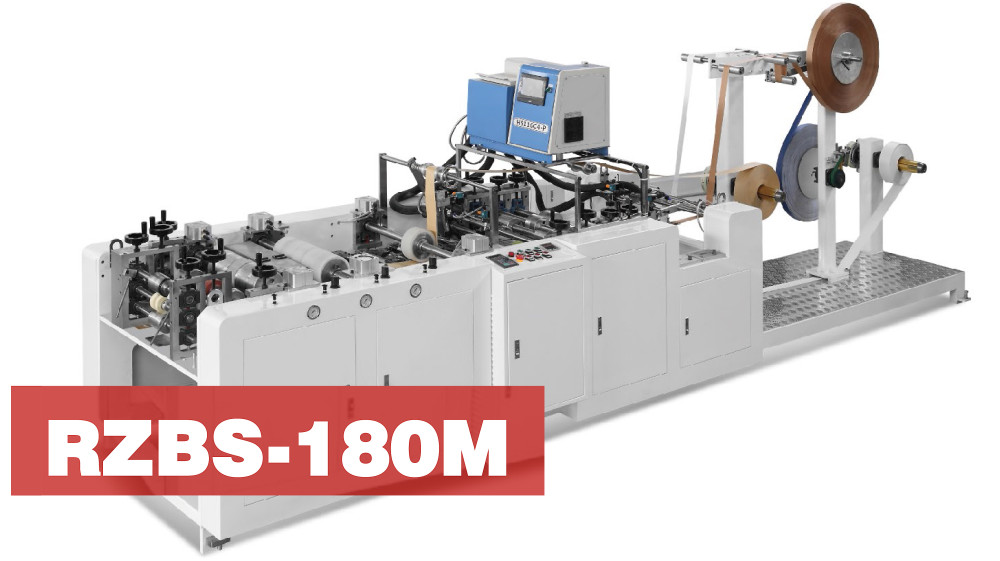 A EcoBag RZBS-180M é uma máquina de fazer alças planas para sacolas de papel a partir de banda estreitas de papel. É geralmente usada com a máquina de fazer sacolas de papel. Tomando quatro rolos de papel de banda estreita como matéria-prima, a RZBS-180M faz alças planas de papel colando os rolos e alças em conjunto e gradualmente cortando-os, formando assim as alças planas. A máquina possui funções de contagem e colagem automática, o que ajuda muito na eficiência do trabalho de fabricação subsequente das sacolas de papel manualmente.