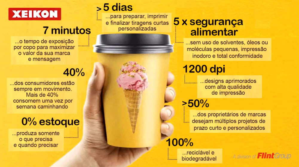 Cada copo e pote tem 7 minutos de exposição, mais do que qualquer outra mídia impressa. Infelizmente, os copos em si tendem a ter má reputação, tanto em termos de design quanto de qualidade. E prazos de entrega de 6 a 8 semanas? Isso é impraticável. Mas com a Xeikon você muda tudo isto, agora!